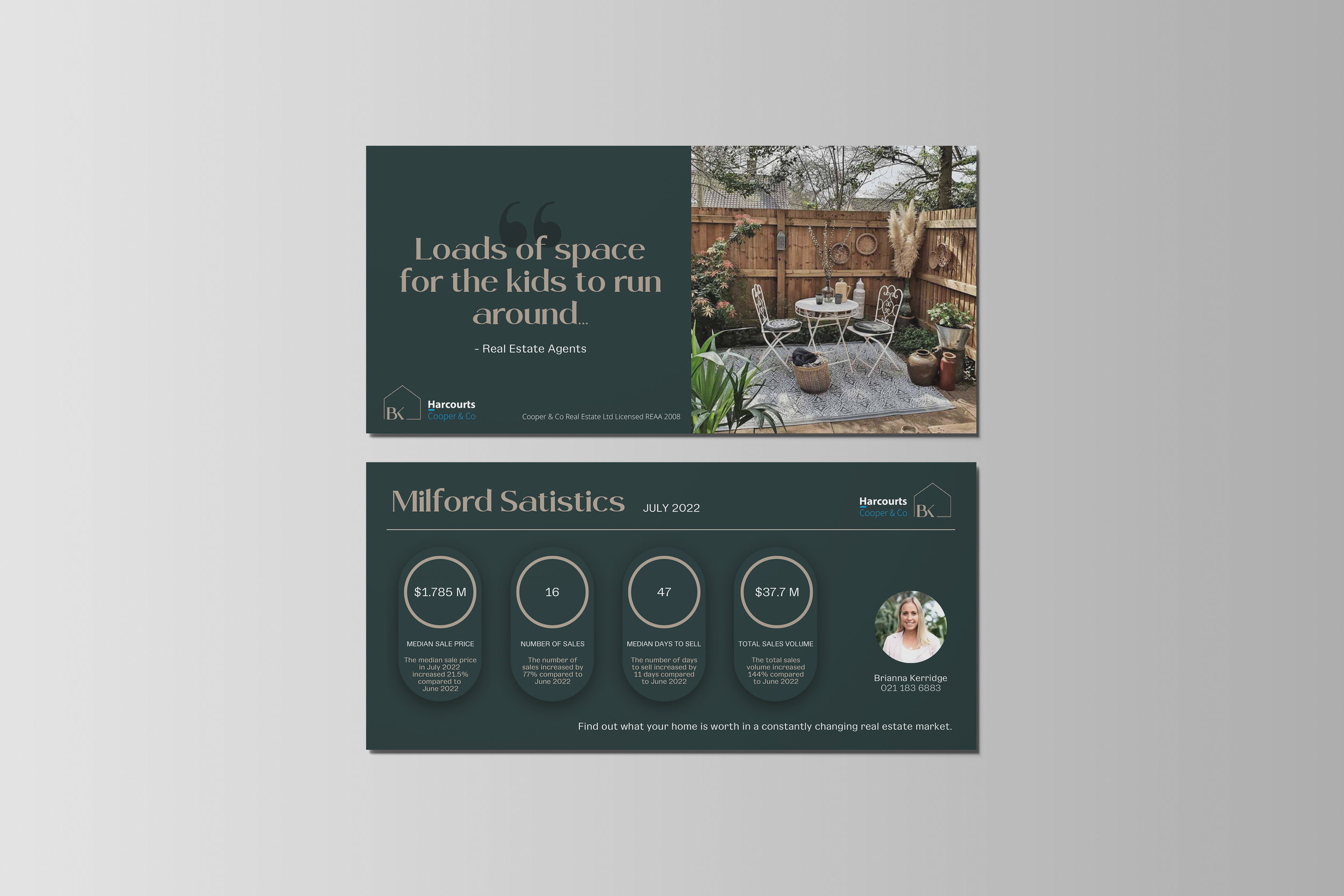 We developed the complete Brianna Kerridge brand—from logo and colour palette to brand guidelines and typography. Brianna is a Harcourt’s Agent and trusted us to bring her vision to life.