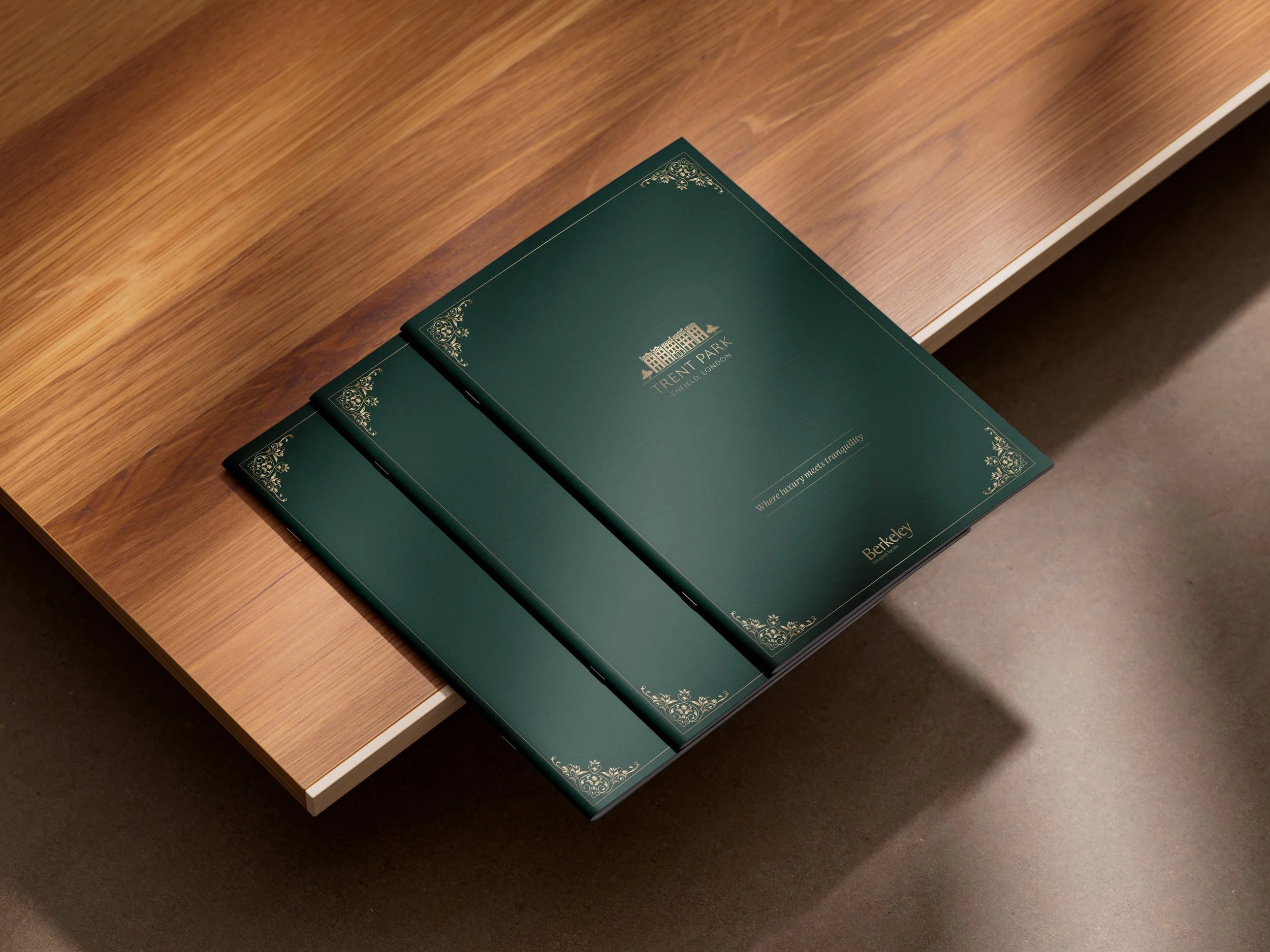 Designed a complete suite of print materials for The Mansion House launch, including a coffee table–style brochure with linen hardback cover and bronze-gold foiling, launch invitations, floorplan packs, and lightbox displays. Across Trent Park, we’ve produced magazines, Host Brochures, event invitations, and print advertisements, with features in Vogue.